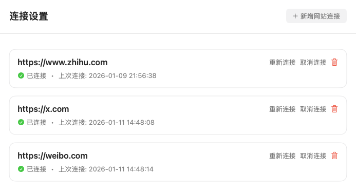 连接到多个网站并保持登录状态。以已登录的身份帮你浏览页页面、总结社交媒体动态。
