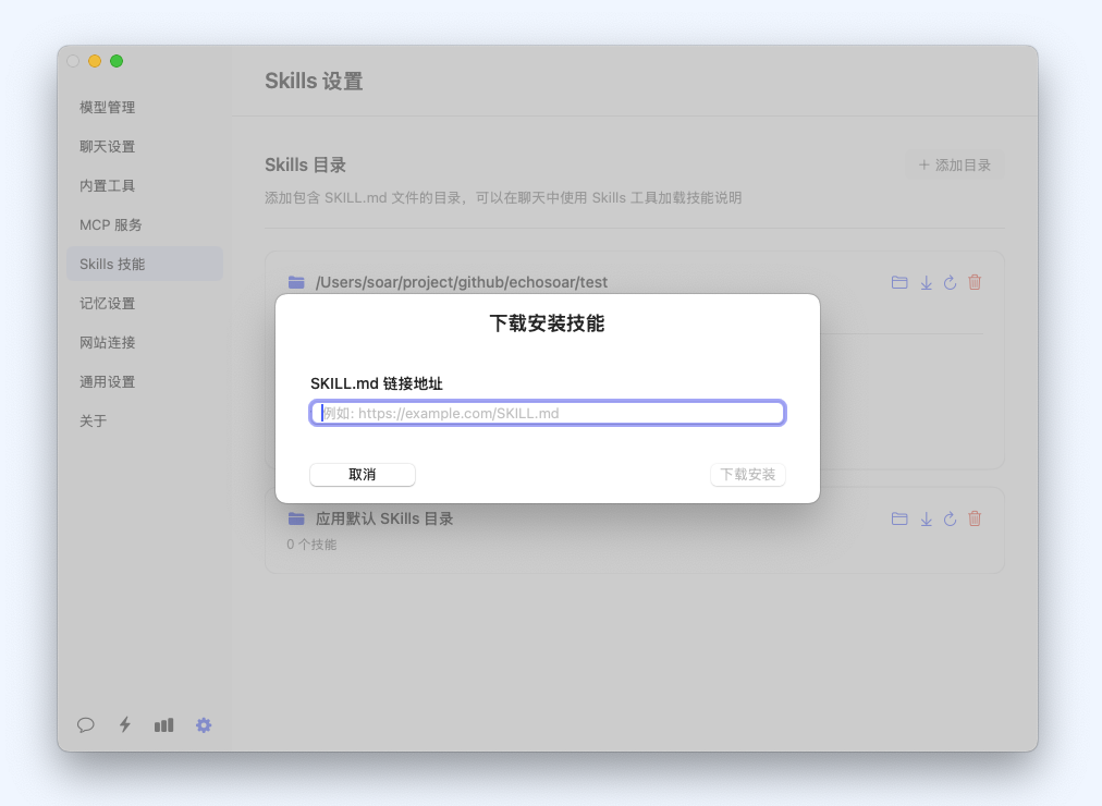 支持一键下载安装多种 Skills,扩展 Ract 功能。